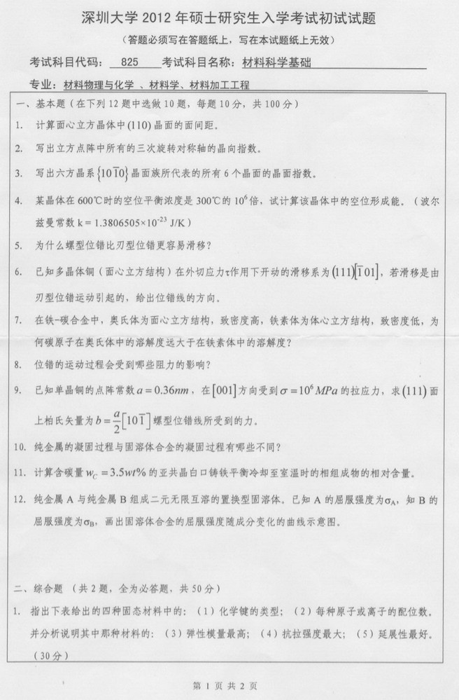 今年专业笔试考的科目有材料科学基础、金属热处理、材料性能分 ...