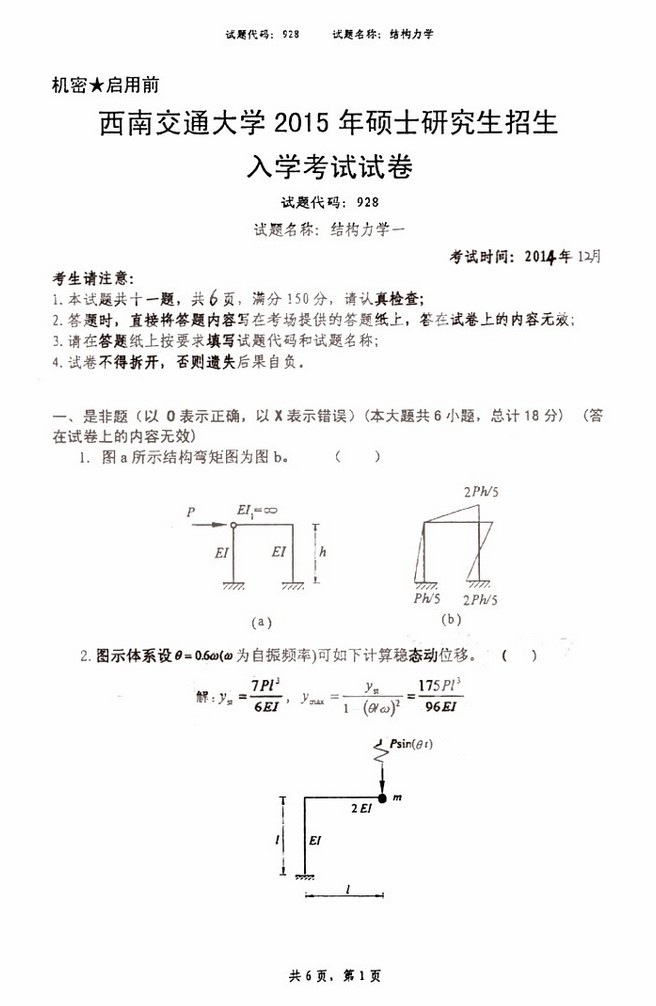 专业课考研资料 本站小编 免费考研网 2020-02-262013年西南交通大学923材料力学考研真题带手写答案