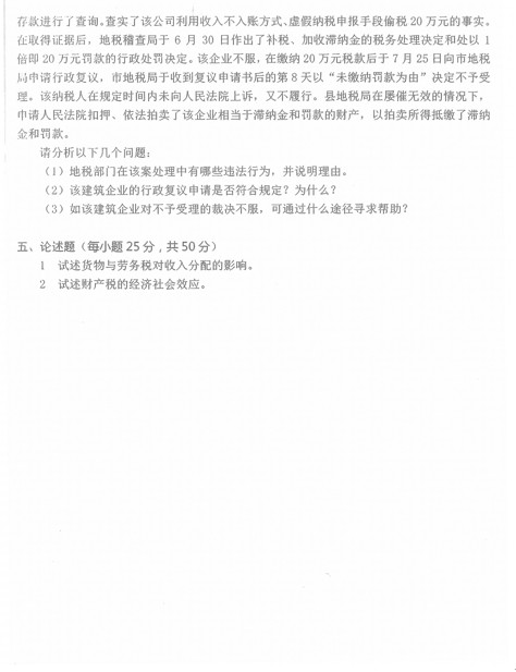 • 2020中南财经政法大学税务硕士433初试回忆真题