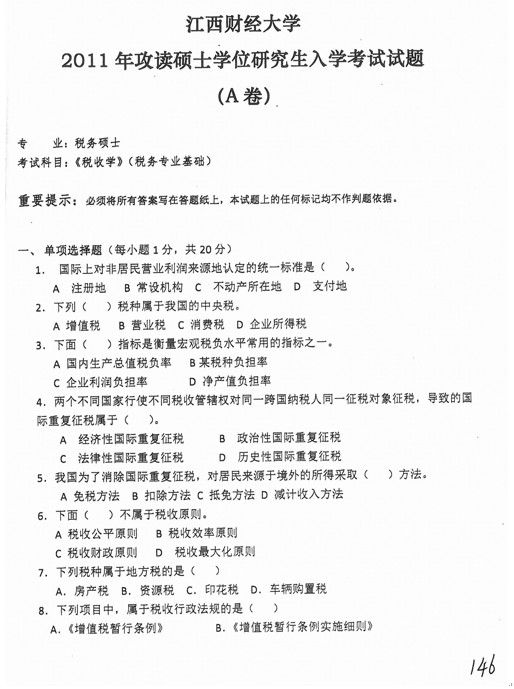 • 2020中南财经政法大学税务硕士433初试回忆真题