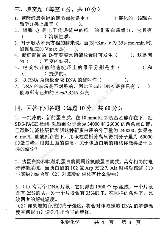 南开大学2011-2010,2006-2004生物化学711考研真题(16)