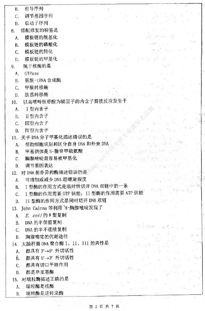 南开大学2011-2010,2006-2004生物化学711考研真题(19)