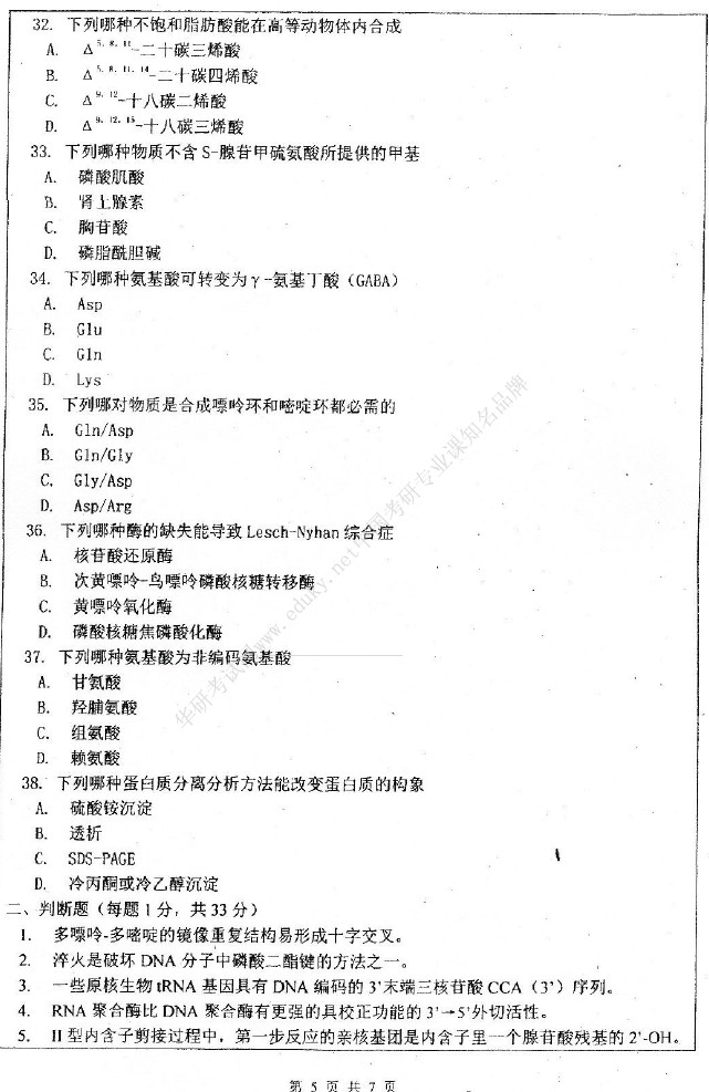 南开大学2011-2010,2006-2004生物化学711考研真题(22)