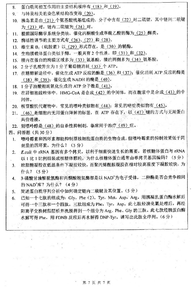 南开大学2011-2010,2006-2004生物化学711考研真题(24)