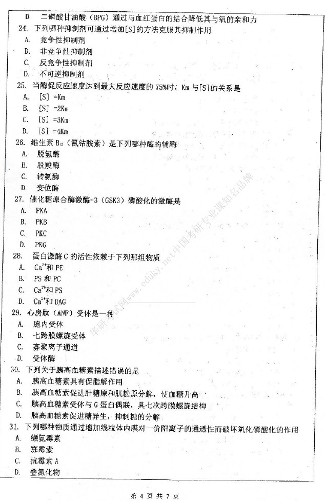 南开大学2011-2010,2006-2004生物化学711考研真题(4)