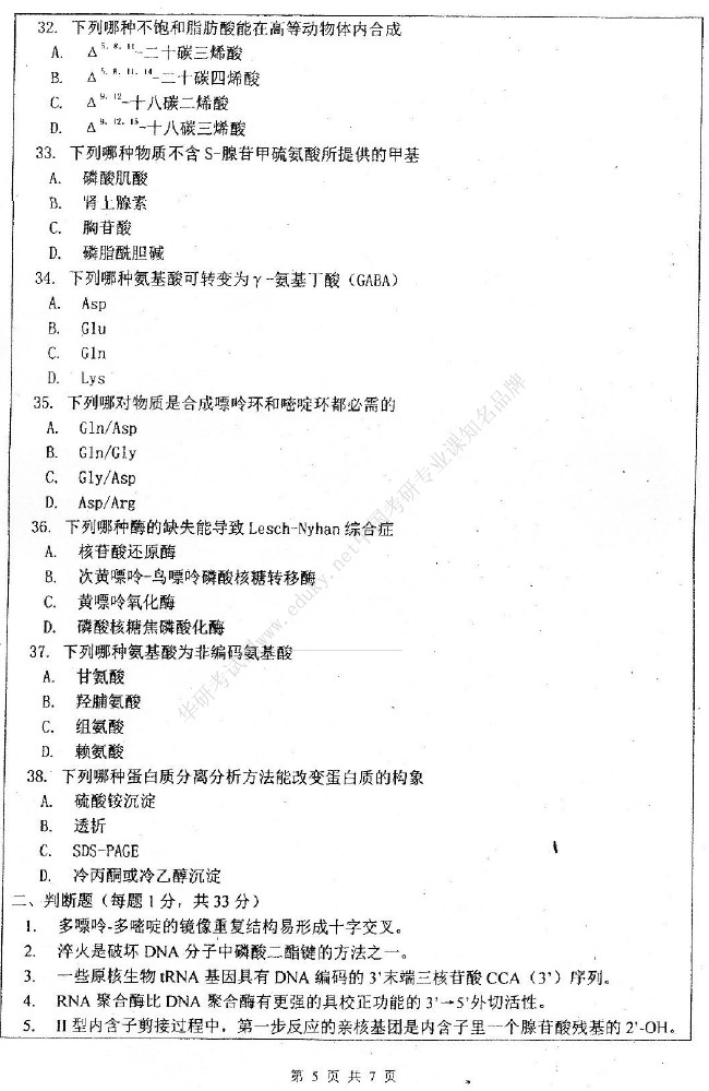 南开大学2011-2010,2006-2004生物化学711考研真题(5)
