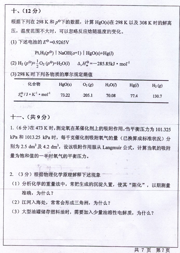 武汉大学2011-2010分析化学与物理化学882考研真题(13)