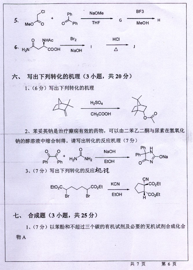 武汉大学2011-2010无机化学和有机化学636考研真题(14)