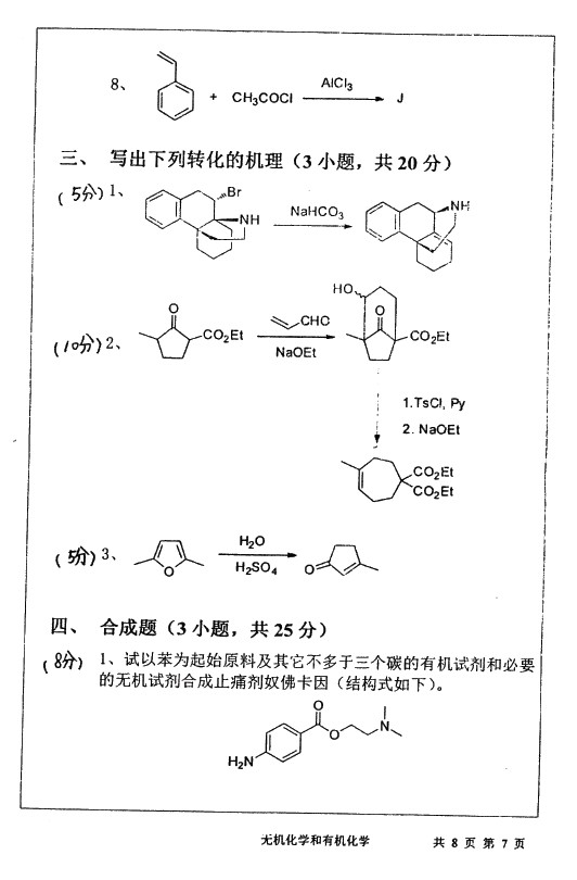 武汉大学2011-2010无机化学和有机化学636考研真题(7)