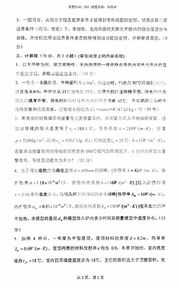 2015年西南交通大学传热学831考研真题(3)