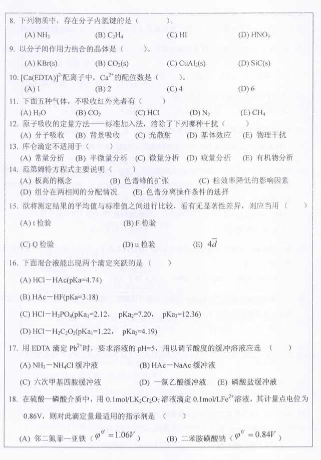 专业课考研资料 本站小编 免费考研网 2020-03-01武汉大学2011-2010分析化学与物理化学882考研真题