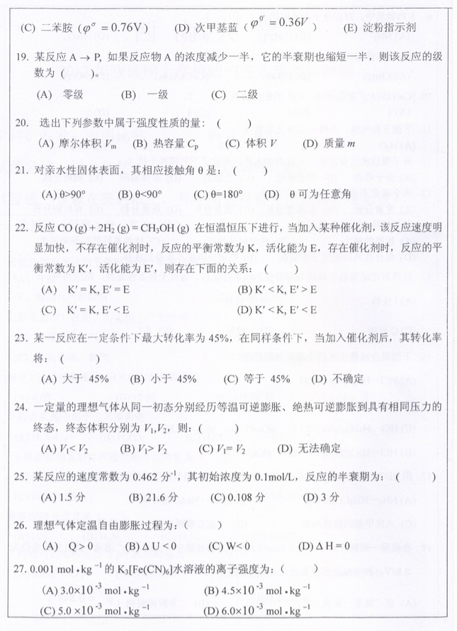 专业课考研资料 本站小编 免费考研网 2020-03-01武汉大学2010物理化学和高分子化学与物理637考研真题
