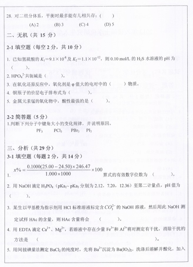 专业课考研资料 本站小编 免费考研网 2020-03-01武汉大学2011-2010分析化学与物理化学882考研真题