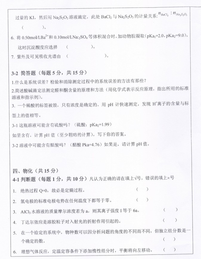 专业课考研资料 本站小编 免费考研网 2020-03-01武汉大学2011-2010分析化学与物理化学882考研真题