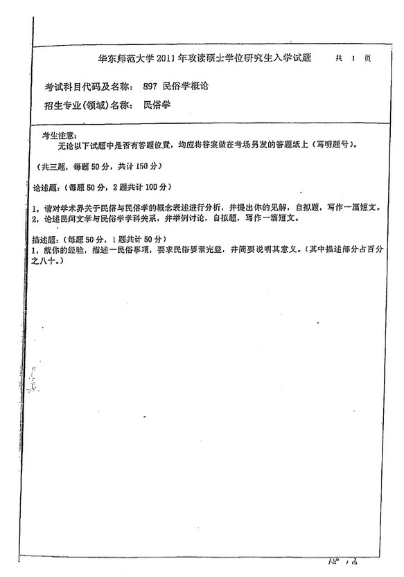 华东师范大学2011-2015民俗学概论897考研真题(5)