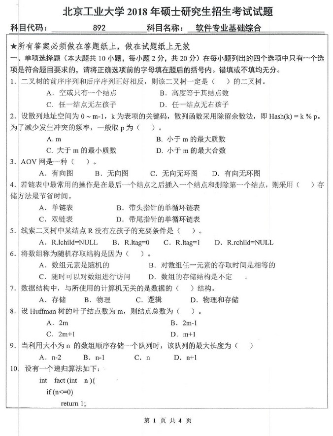 辅导考试考研资料 本站小编 Free考研 2020-02-25一、填空(30分,每空1分)
