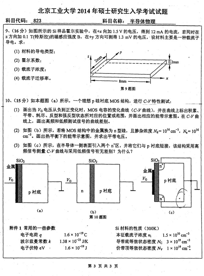 2014年北京工业大学823半导体物理考研真题(3)