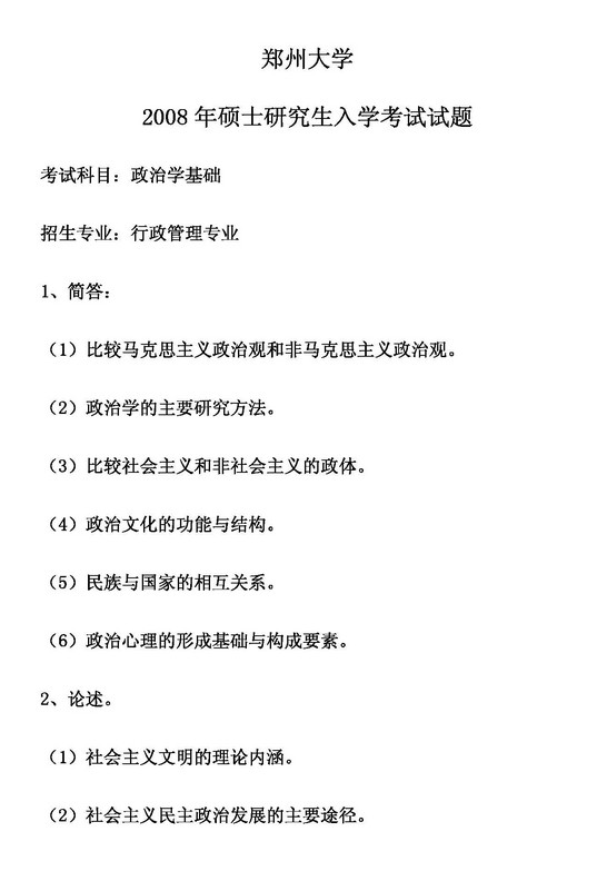 中国人民大学公共管理学考博真题 当代中国政治与经济