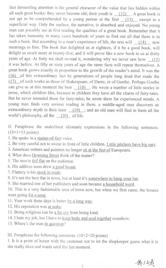 专业课考研资料 本站小编 免费考研网 2020-02-292014年沈阳工业大学1001英语考博真题
