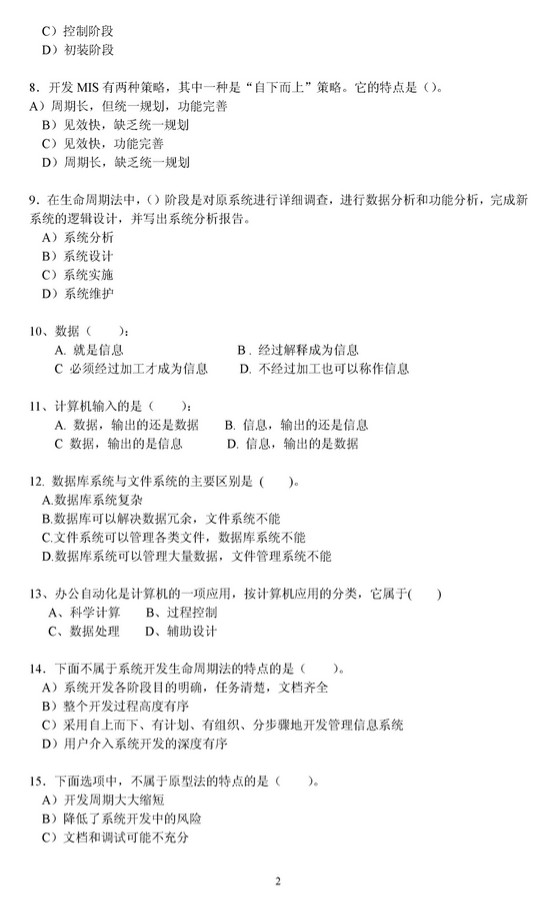 2010上海财经大学管理信息系统(A卷)年考研真题(2)