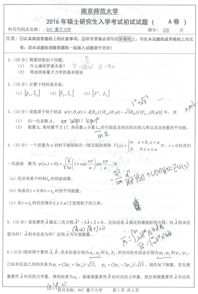 专业课考研资料 本站小编 免费考研网 2020-03-012016年南京师范大学普通物理考研真题