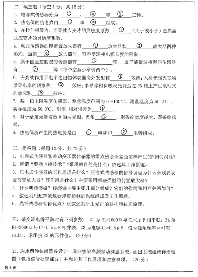 2010年-2011年2014年-2016年四川大学857传感器技术考研真题试题试卷(6)