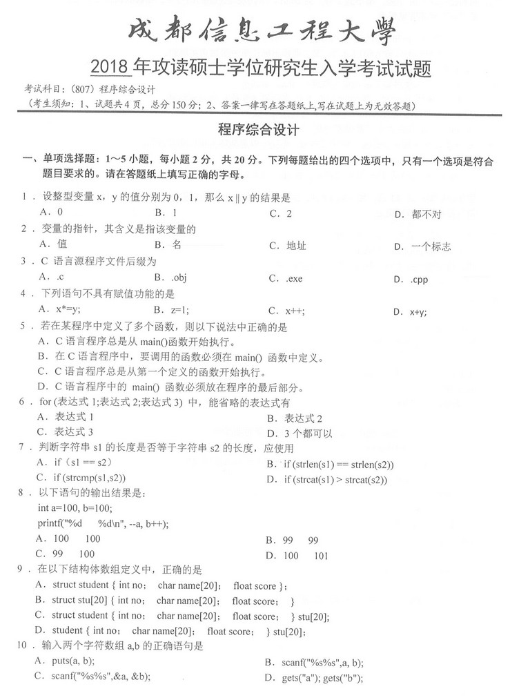 专业课考研资料 本站小编 免费考研网 2020-03-01 2012年攻读硕士学位研究生入学考试试题