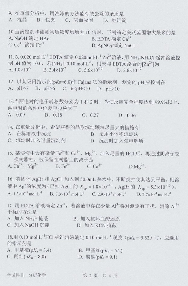 2016中国科学技术大学853分析化学考研试题(2)