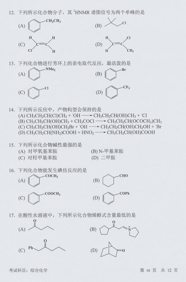 2016中国科学技术大学综合化学846考研试题(10)