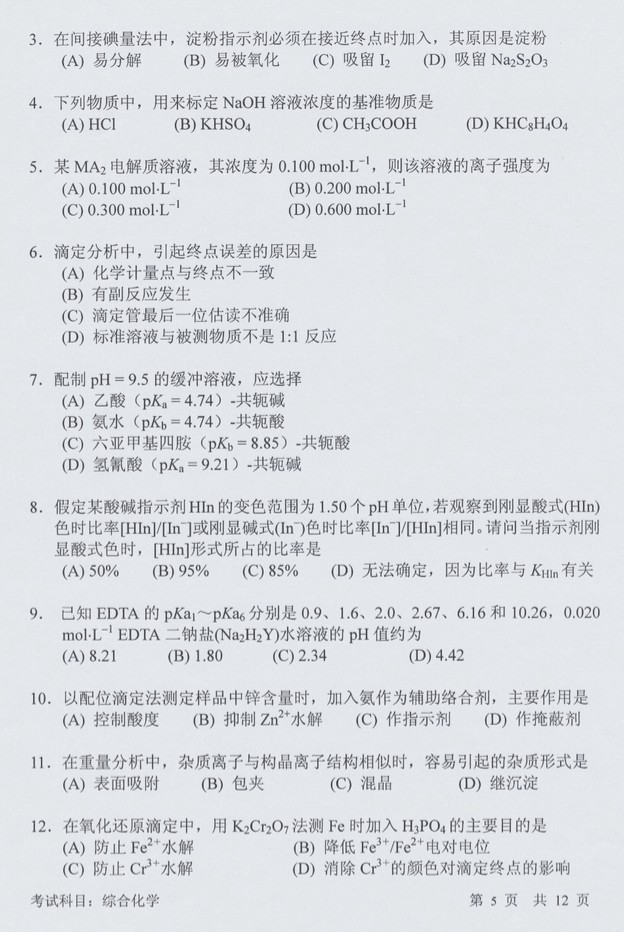 2016中国科学技术大学综合化学846考研试题(5)