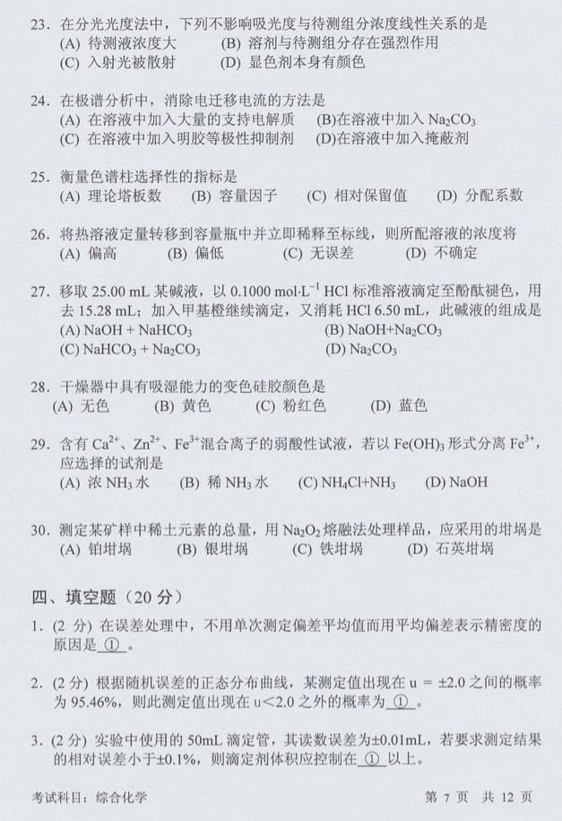 2016中国科学技术大学综合化学846考研试题(7)