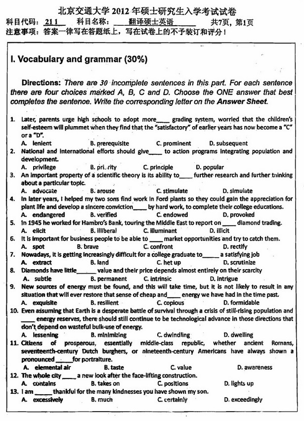 北京交通大学2012翻译硕士MTI翻译硕士英语考研真题(3)