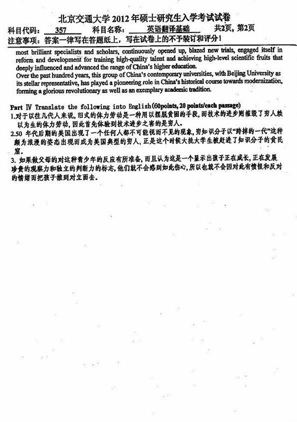 北京交通大学2012翻译硕士MTI英语翻译基础研真题(2)