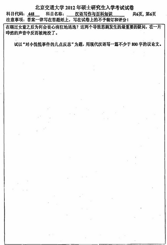 北京交通大学2012翻译硕士MTI汉语写作与百科知识研真题(6)