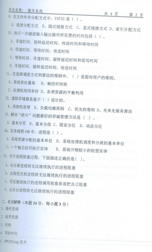 沈阳航空航天大学2013年操作系统811考研真题(2)