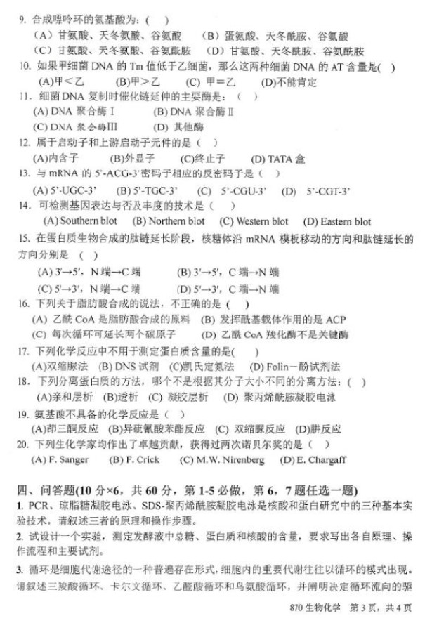 2016年北京化工大学生物化学硕士研究生考研真题(3)