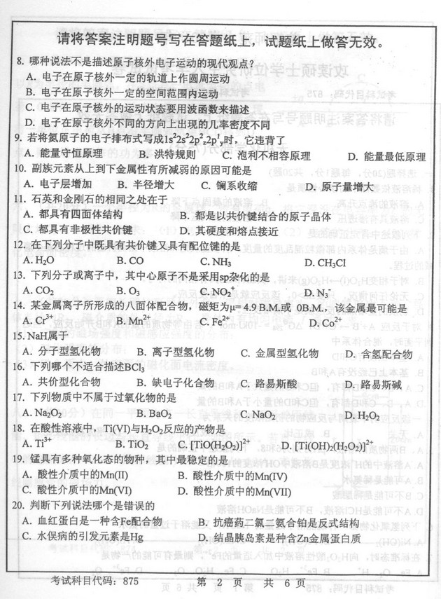 2011年首都师范大学普通化学875考研真题(2)