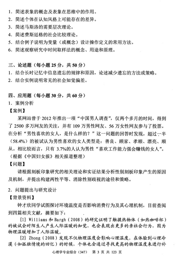 2015年中央财经大学347心理学专业综合考研真题(3)