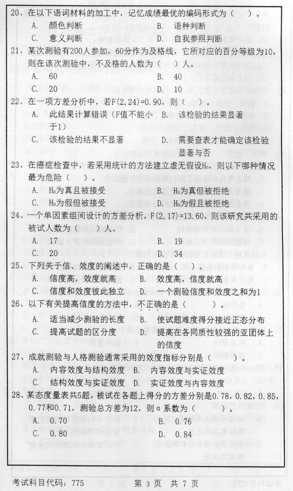 2014年首都师范大学心理学基础综合考研真题(3)