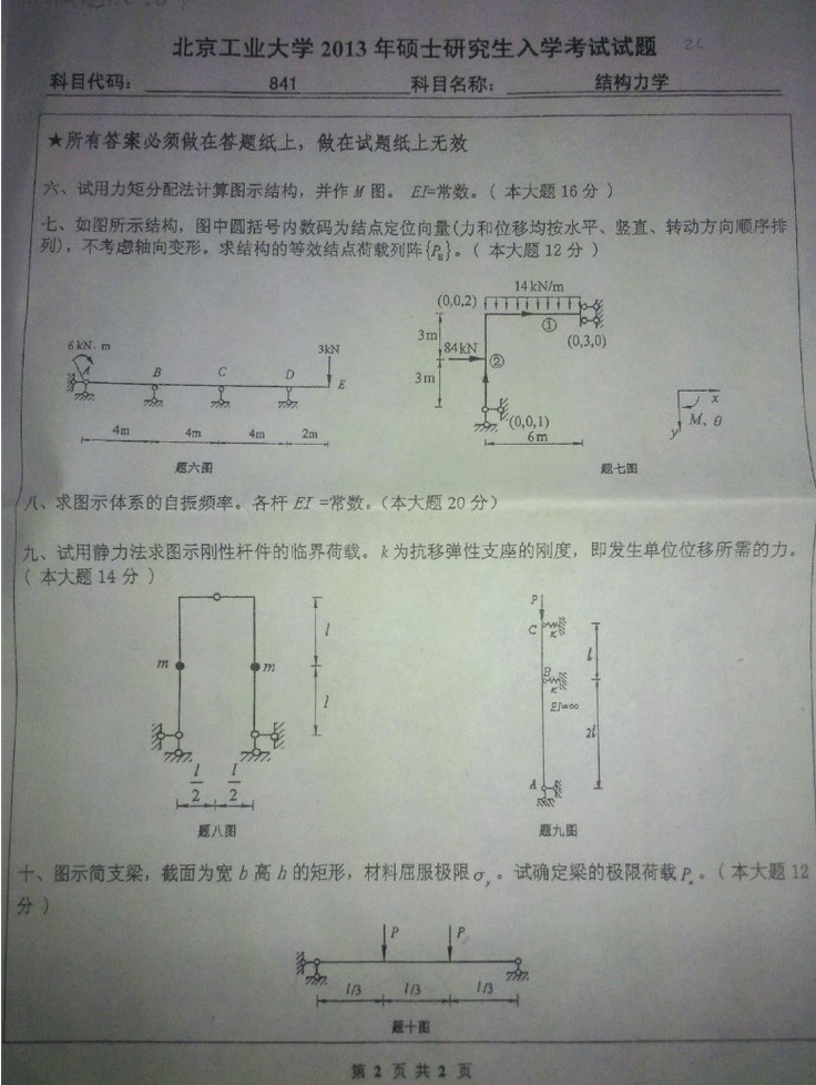 2020年全国硕士研究生统一入学考试成绩已陆续公布,我校力学学科硕士学位授权点接受调剂。凡是力学、数学、土木、机械、采矿、计算机、材料、地质、物理等相关专业的考生且考研成绩达到国家线者(包含单科)均可参与调剂(目前只接受学术型硕士),届时学院将根据复试结果择优录取。欢迎广大考生踊跃参加,成为西安科技 ...考研调剂信息 本站小编 Free考研网 2020-03-012015年西南交通大学928结构力学一考研真题