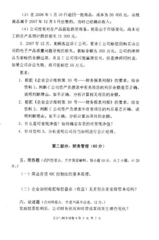 中南财经政法大学2008会计与财务824考研试题(5)