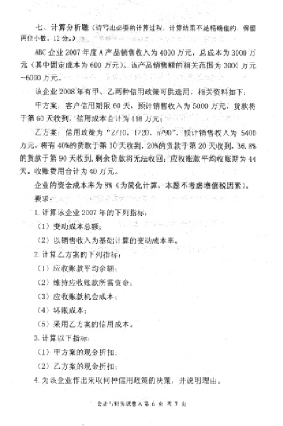 中南财经政法大学2009会计与财务824考研试题 本站小编 免费考研网 2020-03-02