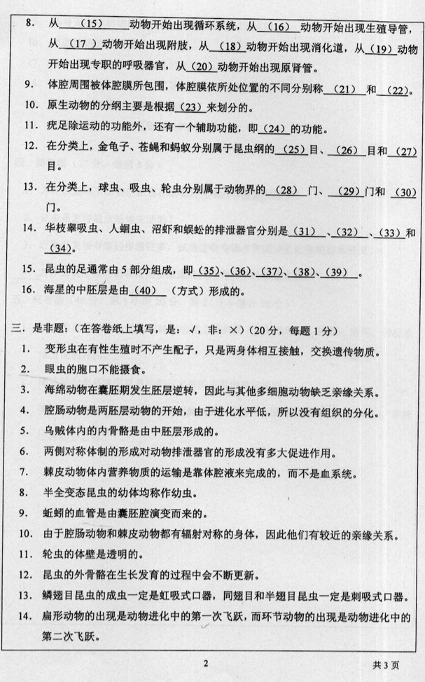 2007年上海师范大学无脊椎动物学考研真题(2)