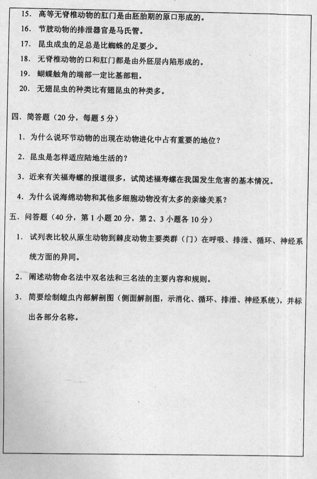 2007年上海师范大学无脊椎动物学考研真题(3)