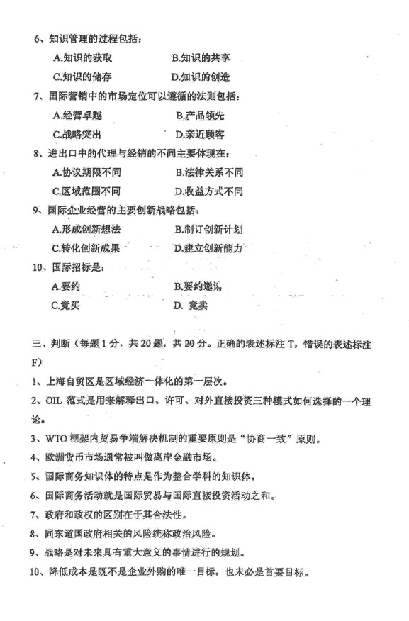 • 2020上海对外经贸大学国际法学考研初试真题回忆版