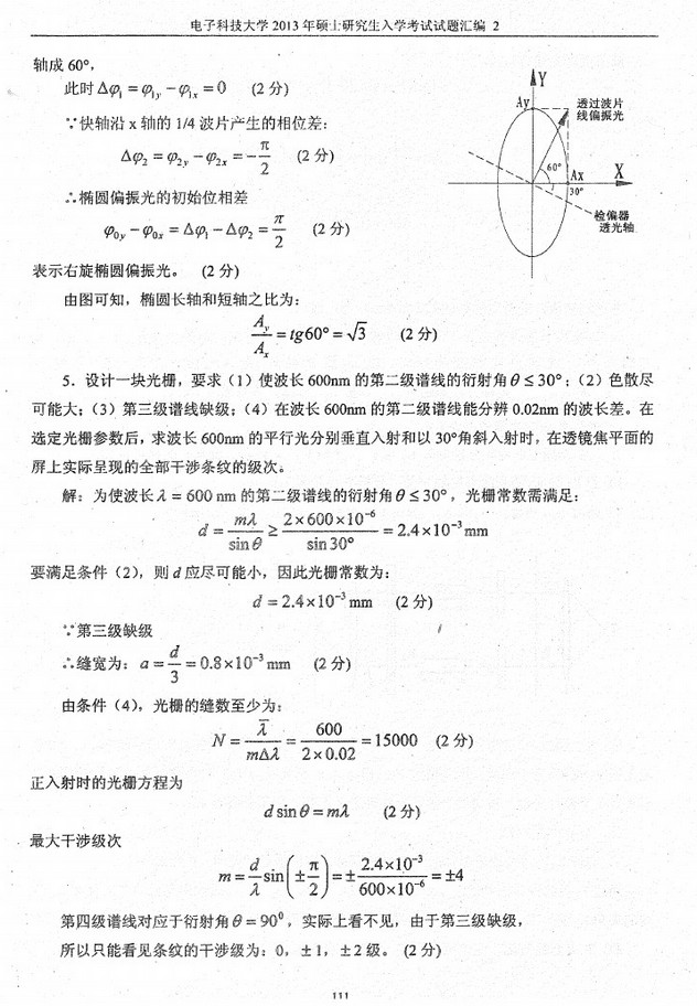 电子科技大学2013年物理光学840考研真题及答案(10)