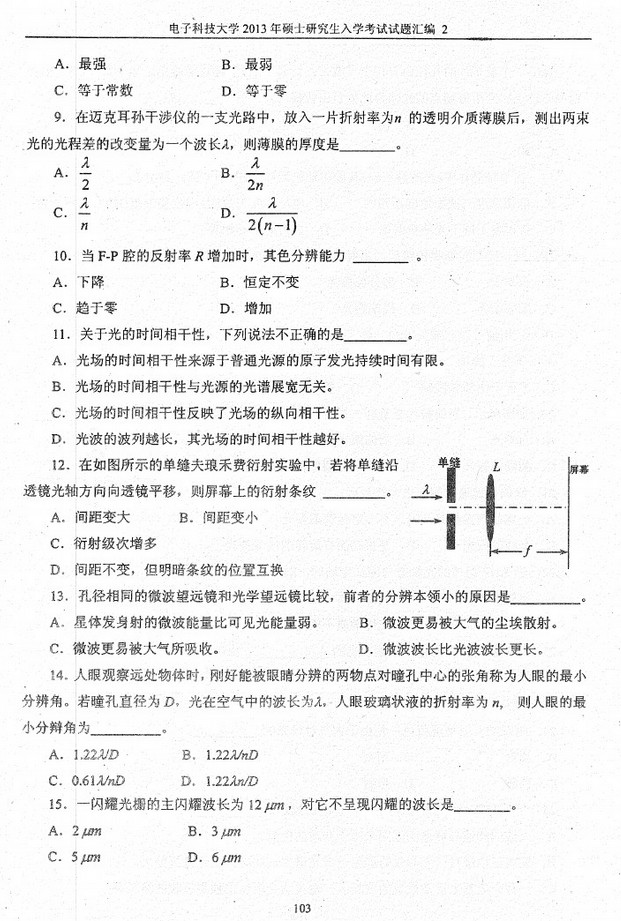 电子科技大学2013年物理光学840考研真题及答案(2)