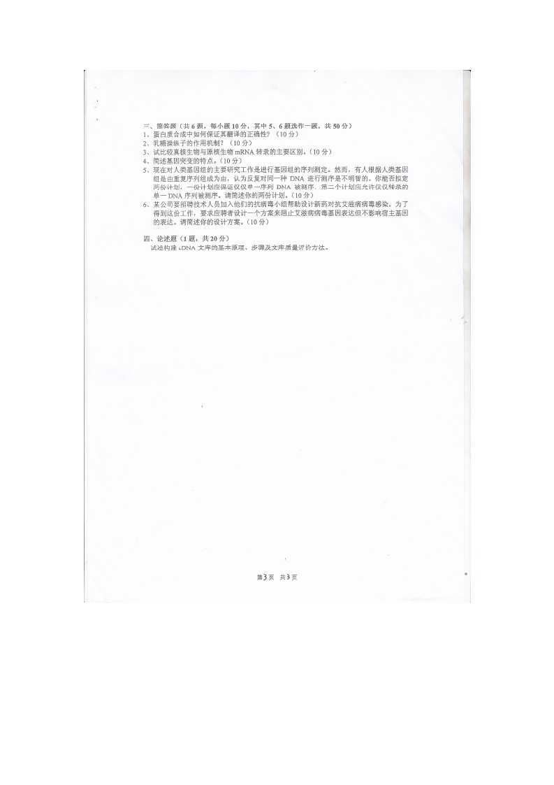 2003-2014重庆大学分子生物学历年考研真题(15)