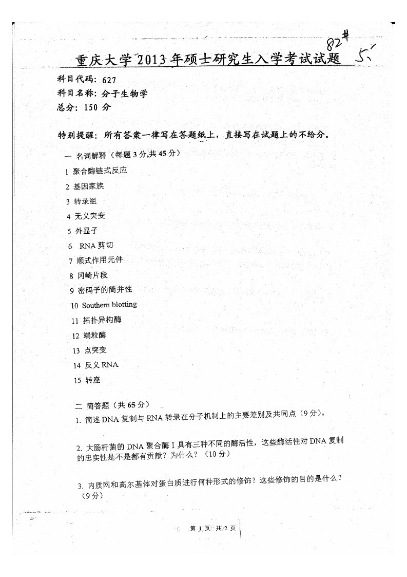 2003-2014重庆大学分子生物学历年考研真题(17)