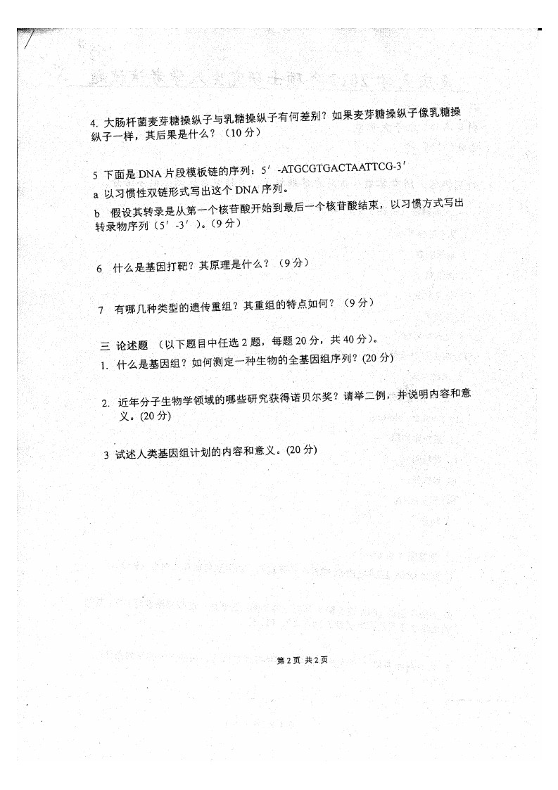 2003-2014重庆大学分子生物学历年考研真题(18)